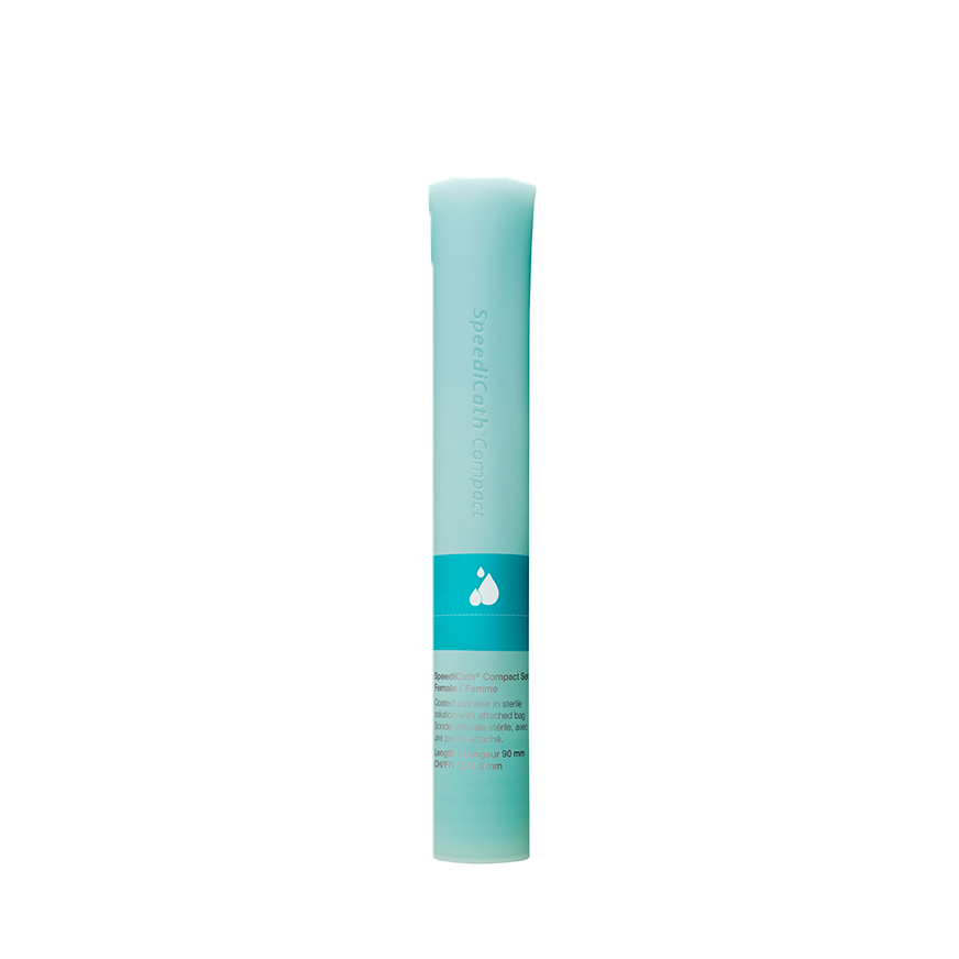 Compact and discreet catheter, immediately ready for use. The catheter can be easily stored in a pocket or handbag.